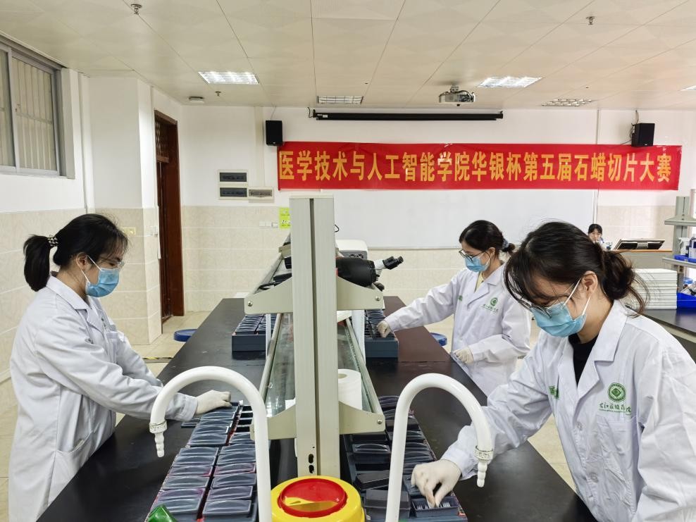 为深化产教融合,锤炼学生实践技能,2025年12月28日,由右江民族医学院附属医院病理科与医学技术与人工智能学院医学实验技术教研室共同承办的“广西华银康杯”第五届石蜡切片大赛在7栋综合楼实验室成功举办。