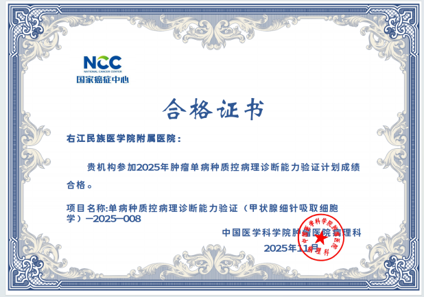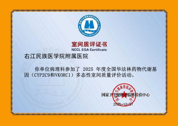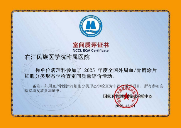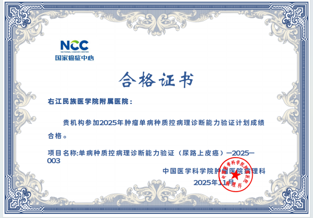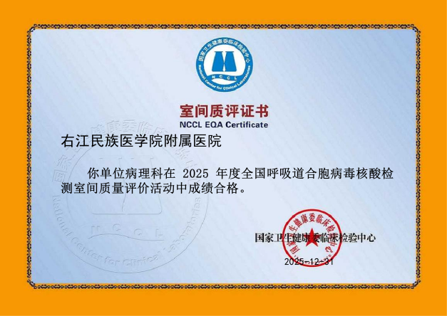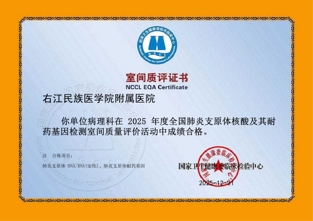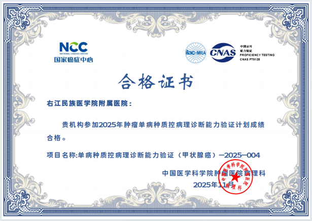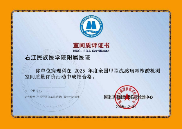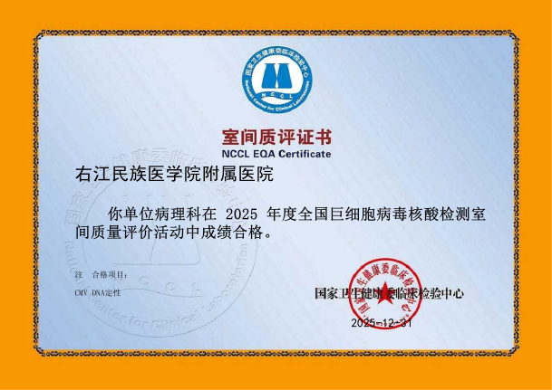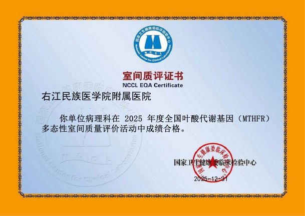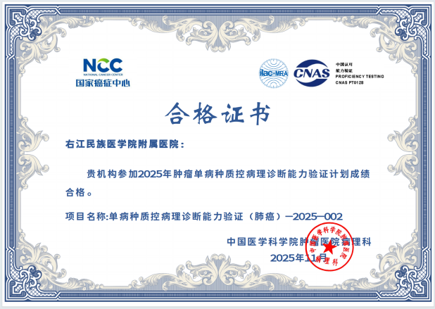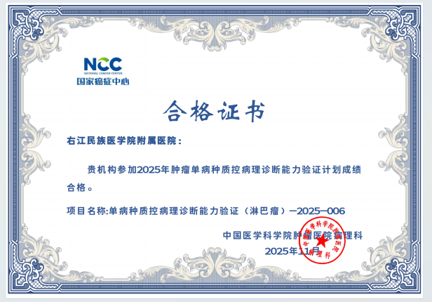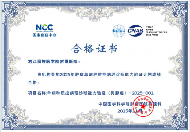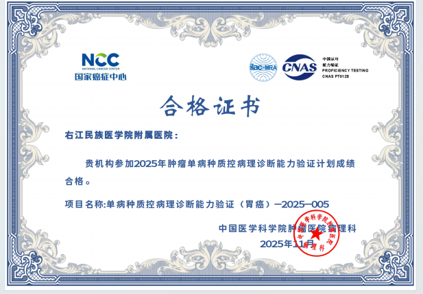 近日,从国家及省级权威质量评价机构传来喜讯,右医附院病理科在2025年度室间质评中再创佳绩,43项次国家及省级参评项目全部以优异成绩通过,实现“大满贯”,标志着科室全流程诊断技术水平跻身国家行业高标准,为临床精准诊疗筑牢质量根基。